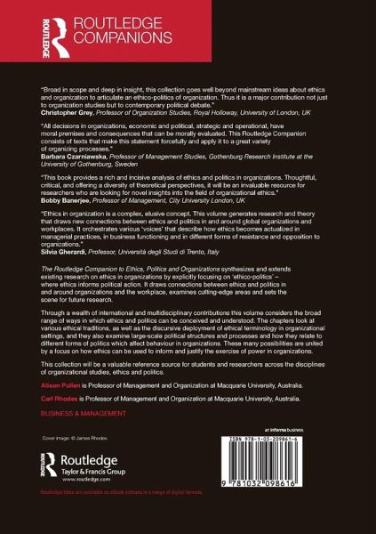 The Routledge Companion to Ethics, Politics and Organizations synthesizes and extends existing research on ethics in organizations by explicitly focusing on 'ethico-politics' - where ethics informs political action. It draws connections between ethics and politics in and around organizations and the workplace, examines cutting-edge areas and sets the scene for future research.