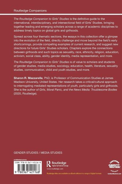The Routledge Companion to Girls' Studies is of value to scholars and students of gender studies, media studies, sociology, education, health, literature, sexuality studies, communication, child and youth studies, and more.