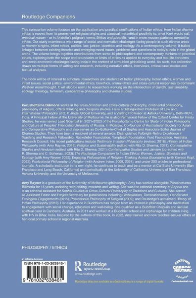 This companion volume focuses on the application and practical ramifications of Indian ethics. Here Indian dharma ethics is moved from its preeminent religious origins and classical metaethical proclivity to, what Kant would call, practical reason - or in Aristotle's poignant terms, hikos and phron is -and in more modern parlance normative ethics. Our study examines a wide range of social and normative challenges facing people in such diverse areas as women's rights, infant ethics, politics, law, justice, bioethics and ecology. As a contemporary volume, it builds linkages between existing theories and emerging moral issues, problems and questions in today's India in the global arena. The volume brings together contributions from some 40 philosophers and contemporary thinkers on practical ethics, exploring both the scope and boundaries or limits of ethics as applied to everyday and real-life concerns and socio-economic challenges facing India in the context of a troubled globalizing world. As such, this collection draws on multiple forms of writing and research, including narrative ethics, interviews, critical case studies and textual analyses.