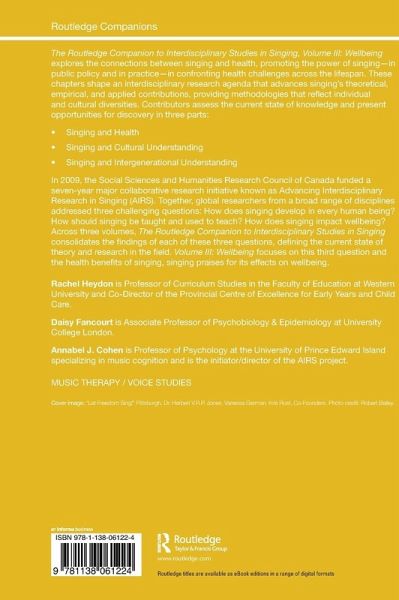 The Routledge Companion to Interdisciplinary Studies in Singing, Volume III: Wellbeing explores the connections between singing and health, promoting the power of singing-in public policy and in practice-in confronting health challenges across the lifespan.
