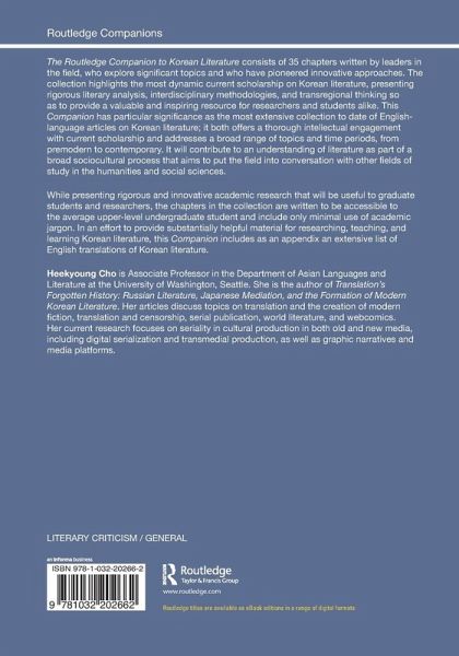 The Routledge Companion to Korean Literature highlights the most dynamic current scholarship on Korean literature, presenting rigorous literary analysis, interdisciplinary methodologies, and transregional thinking so as to provide a valuable and inspiring resource for researchers and students alike.