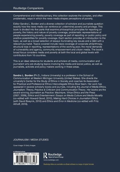Editor Sandra L. Borden and a diverse collection of scholars and journalists question exactly how the news media can reinforce (or undermine) poverty and privilege. This book is divided into five parts that examine philosophical principles for reporting on poverty, the history and nature of poverty coverage, problematic representations of people experiencing poverty, poverty coverage as part of reporting on public policy and positive possibilities for poverty coverage. Each section provides an introduction to the topic, as well as a broad selection of essays illuminating key issues and a Q&A with a relevant journalist. Topics covered include news coverage of corporate philanthropy, structural bias in reporting, representations of the working poor, the moral demands of vulnerability and agency, community empowerment and citizen media. The book's broad focus considers media and poverty at both the local and global levels with contributors from 16 countries.