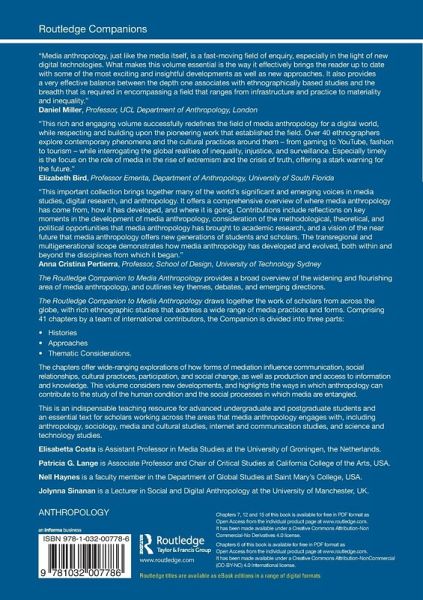The Routledge Companion to Media Anthropology defines the widening and flourishing area of media anthropology, and outlines key themes, debates, and emerging directions.