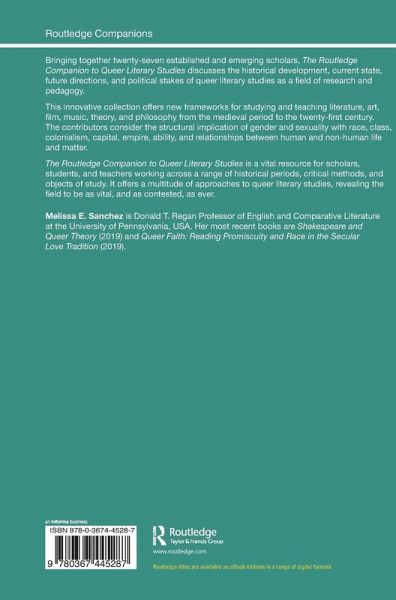 Bringing together twenty-seven established and emerging scholars, The Routledge Companion to Queer Literary Studies discusses the historical development, current state, future directions, and political stakes of queer literary studies as a field of research and pedagogy.