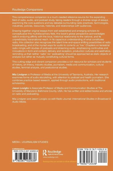 "Radio's long history shines in this Routledge volume along with a spotlight on successes and new technology challenges for podcasting. The 46 chapters are complementary to one another and it's a great collection that will be cherished by historians and academics." -Kim Fox, American University in Cairo, Egypt.
