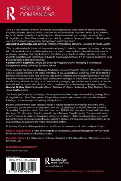 The Routledge Companion to Strategic Marketing offers the latest insights into marketing strategy. Bodo Schlegelmilch and Russ Winer present 29 specially commissioned chapters, which include up-to-date thinking on a diverse range of marketing strategy topics.