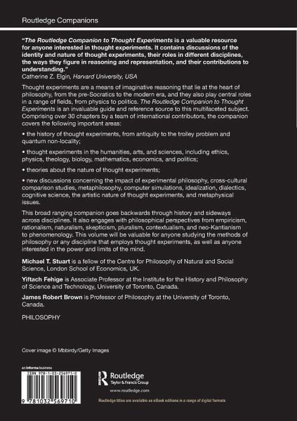 "The Routledge Companion to Thought Experiments is a valuable resource for anyone interested in thought experiments. It contains discussions of the identity and nature of thought experiments, their roles in different disciplines, the ways they figure in reasoning and representation, and their contributions to understanding."