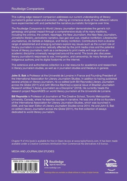 This cutting-edge research companion addresses our current understanding of literary journalism's global scope and evolution, offering an immersive study of how different nations have experimented with and perfected the narrative journalistic form/genre over time.