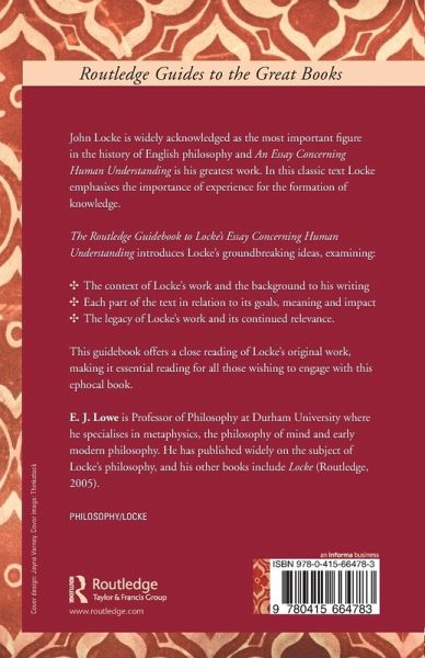 John Locke is widely acknowledged as the most important figure in the history of English philosophy and An Essay Concerning Human Understanding is his greatest intellectual work, emphasising the importance of experience for the formation of knowledge. The Routledge Guidebook to Locke's Essay Concerning Human Understanding introduces the major themes of Locke's great book and serves as a companion to this key work, examining: