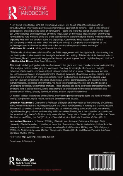 This handbook brings together scholars from around the globe who here contribute to our understanding of how digital rhetoric is changing the landscape of writing. Increasingly, all of us must navigate networks of information, compose not just with computers but an array of