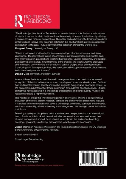 'The Routledge Handbook of Festivals is an excellent resource for festival academics and students. It is most timely in that it confirms the maturity of research in festivals by offering a comprehensive range of perspectives. The editor and authors are the leading researchers in this field and to have their expertise collated in this one handbook provides a significant contribution to the area. I fully recommend this collection of insightful work to you.' Margaret Deery, University of Surrey, UK
