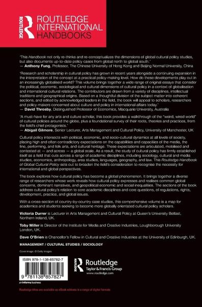 The Routledge Handbook of Global Cultural Policy covers the key perspectives and sets out the contours of the study of cultural policy. It brings together a diverse range of researchers whose work reveals how cultural policy expresses and realises common global concerns, dominant narratives, and geopolitical economic and social inequalities.
