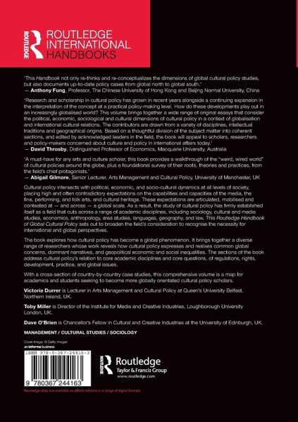 'This Handbook not only re-thinks and re-conceptualizes the dimensions of global cultural policy studies, but also documents up-to-dated policy cases from global north to global south.' - Anthony Fung, Professor, The Chinese University of Hong Kong and Beijing Normal University