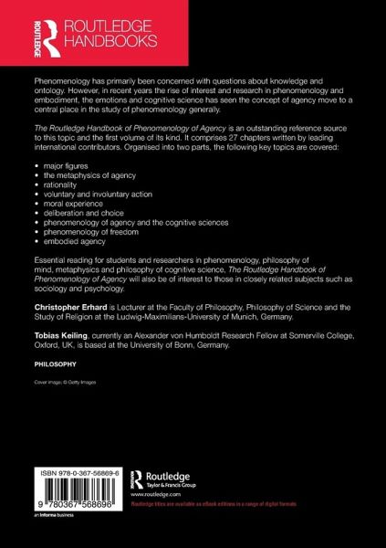 The Routledge Handbook of Phenomenology of Agency is an outstanding reference source to this topic and the first volume of its kind. It comprises twenty-seven chapters written by leading international contributors. Organised into two parts, the following key topics are covered: