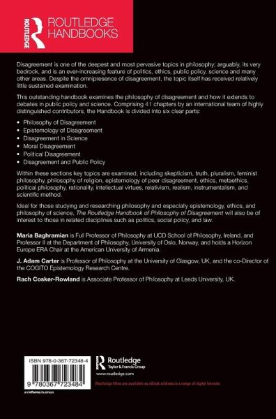 This outstanding handbook examines the philosophy of disagreement and how it extends to debates in public policy and science. Comprising 41 chapters by an international team of highly distinguished contributors, the Handbook is divided into six clear parts: