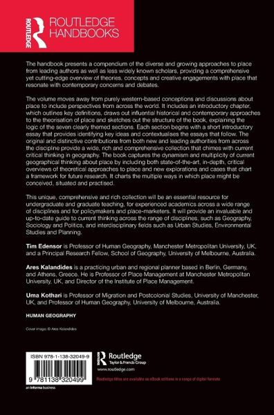 The handbook presents a compendium of the diverse and growing approaches to place from leading authors as well as less widely known scholars, providing a comprehensive yet cutting-edge overview of theories, concepts and creative engagements with place that resonate with contemporary concerns and debates.