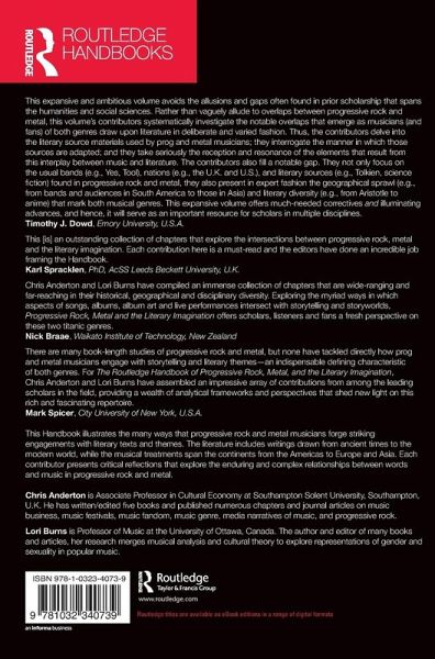 This Handbook illustrates the many ways that progressive rock and metal music forge striking engagements with literary texts and themes. The authors and their objects of analytic inquiry offer global and diverse perspectives on these genres and their literary connections.