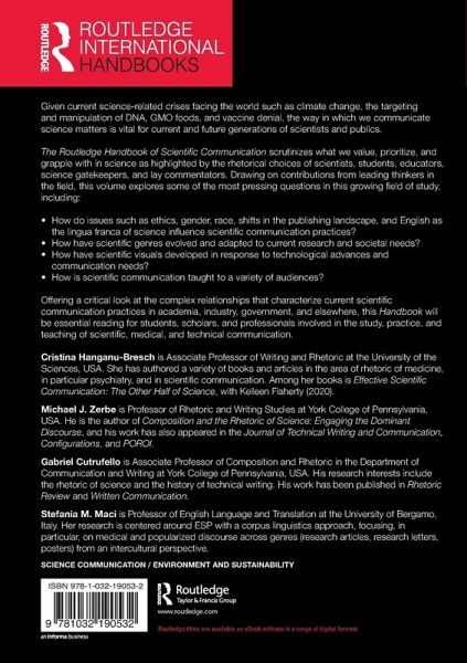 The Routledge Handbook of Scientific Communication scrutinizes what we value, prioritize, and grapple with in science as highlighted by the rhetorical choices of scientists, students, educators, science gatekeepers, and lay commentators. Drawing on contributions from leading thinkers in the field, this volume explores some of the most pressing questions in this growing field of study, including: