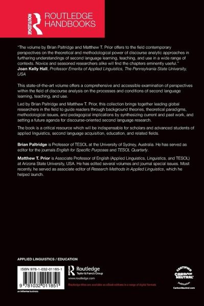 Led by Brian Paltridge and Matthew T. Prior, this collection brings together leading global researchers in the field to guide readers through background theories, theoretical paradigms, methodological issues, and pedagogical implications by synthesizing current and past work, and setting a future agenda for discourse-oriented second language research.
