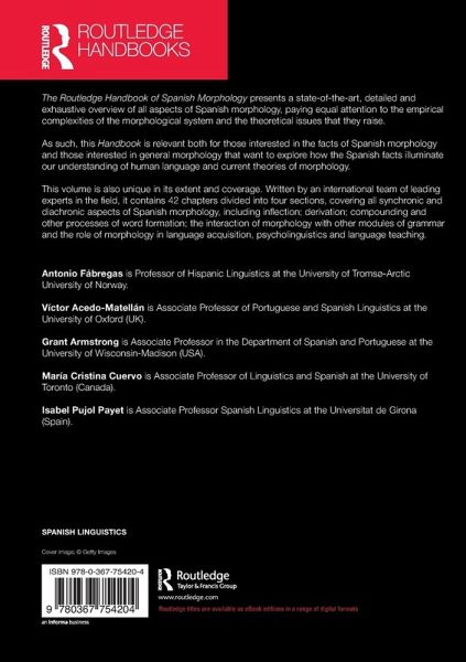 The Routledge Handbook of Spanish Morphology presents a state-of-the-art, detailed and exhaustive overview of all aspects of Spanish morphology, paying equal attention to the empirical complexities of the morphological system and the theoretical issues that they raise.