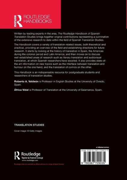 Written by leading experts in the area, The Routledge Handbook of Spanish Translation Studies brings together original contributions representing a culmination of the extensive research to date within the field of Spanish Translation Studies. The Handbook covers a variety of translation related issues, both theoretical and practical, providing an overview of the field and establishing directions for future research. It starts by looking at the history of translation in Spain, the Americas during the colonial period and Latin America, and then moves on to discuss well-established areas of research such as literary translation and audiovisual translation, at which Spanish researchers have excelled. It also provides state-of-the-art information on new topics such as the interface between translation and humour on the one hand, and the translation of comics on the other. This Handbook is an indispensable resource for postgraduate students and researchers of translation studies.