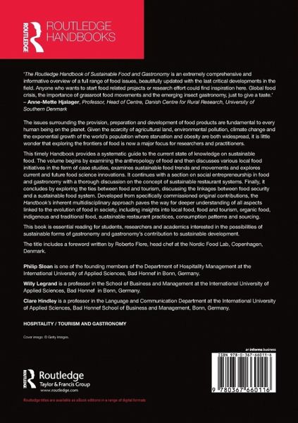 "The Routledge Handbook of Sustainable Food and Gastronomy is an extremely comprehensive and informative overview of a full range of food issues, beautifully updated with the last critical developments in the field. Anyone who wants to start food related projects or research effort could find inspiration here. Global food crisis, the importance of grassroot food movements, and the emerging insect gastronomy, just to give a taste." - Anne-Mette Hjalager, Professor, Head of Centre, Danish Centre for Rural Research, University of Southern Denmark