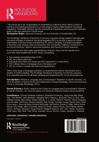 The Routledge Handbook of Systemic Functional Linguistics brings together internationally renowned Systemic Functional Linguistics (SFL) scholars to provide a space for critical examination of the key tenets underpinning SFL theory. Uniquely it includes description of the three main strands within conte