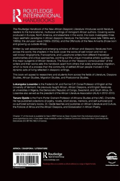 The Routledge Handbook of the New African Diasporic Literature introduces world literature readers to the transnational, multivocal writings of immigrant African authors. Covering works produced in Europe, North America, and elsewhere in the world, this book investigates three major aesthetic paradigms in African diasporic literature: the Sankofan wave (late 1960s-early 1990s); the Janusian wave (1990s-2020s); and the Offshoots of the New Arrivants (those born and growing up outside Africa).