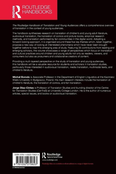 The Routledge Handbook of Translation and Young Audiences offers a comprehensive overview of translation in the context of young audiences and will be a valuable resource for students and scholars in translation studies, audiovisual translation, media translation, multimodal texts, and children's literature.