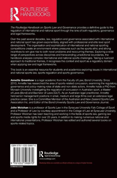 This handbook provides a definitive guide to the regulation of international and national sport through the lens of both regulatory, governance and legal frameworks. This book is an essential resource for students and academics exploring issues in international and national sports law, sports regulation and sport governance.