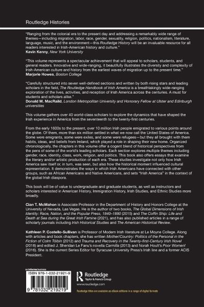 "Carefully structured into seven well-defined sections and written by both rising stars and leading scholars in the field, The Routledge History of Irish America is a breathtakingly wide-ranging exploration of the lives, activities, and reception of Irish America across the centuries. A must for students and scholars alike."