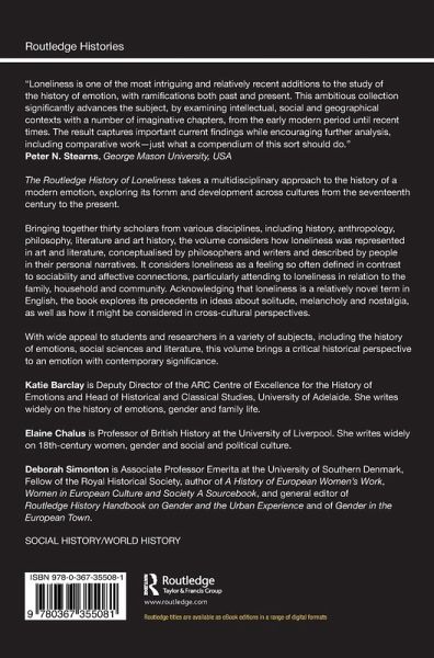 The Routledge History of Loneliness takes a multidisciplinary approach to the history of a modern emotion, exploring its form and development across cultures from the seventeenth century to the present.