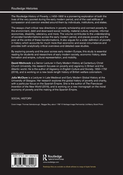 The Routledge History of Poverty, c.1450-1800 is a pioneering exploration of both the lives of the very poorest during the early modern period, and of the vast edifices of compassion and coercion erected around them by individuals, institutions, and states.