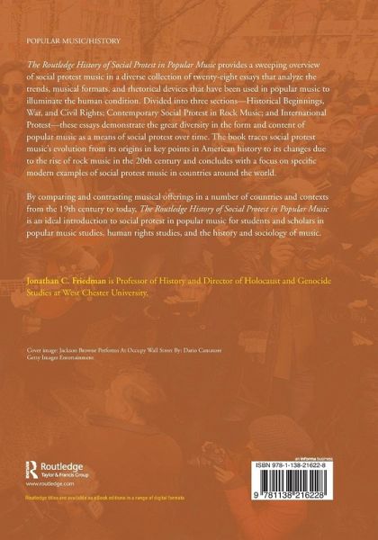 The major objective of this collection of 28 essays is to analyze the trends, musical formats, and rhetorical devices used in popular music to illuminate the human condition. By comparing and contrasting musical offerings in a number of countries and in different contexts from the 19th century until today, The Routledge History of Social Protest in Popular Music aims to be a probing introduction to the history of social protest music, ideal for popular music studies and history and sociology of music courses.