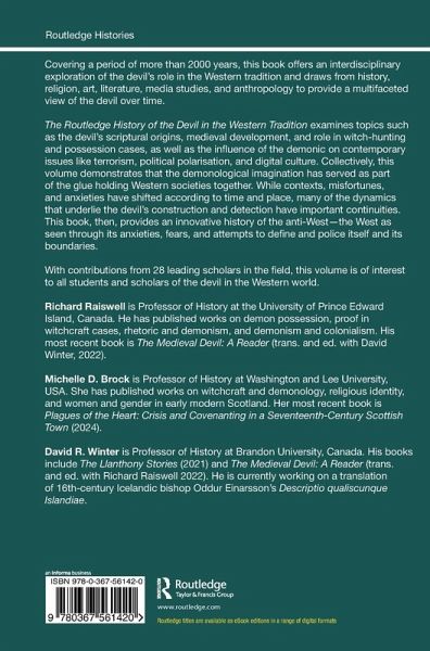 The Routledge History of the Devil in the Western Tradition examines topics such as the devil's scriptural origins, medieval development, and role in witch-hunting and possession cases, as well as the influence of the demonic on contemporary issues like terrorism, political polarisation, and digital culture. Collectively, this volume demonstrates that the demonological imagination has served as part of the glue holding Western societies together. While contexts, misfortunes, and anxieties have shifted according to time and place, many of the dynamics that underlie the devil's construction and detection have important continuities. This book, then, provides an innovative history of the anti-West-the West as seen through its anxieties, fears, and attempts to define and police itself and its boundaries.