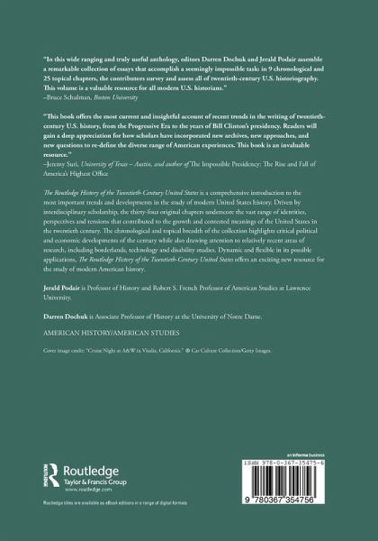 The Routledge History of the Twentieth-Century United States is a comprehensive introduction to the most important trends and developments in the study of modern United States history. Driven by interdisciplinary scholarship, the thirty-four original chapters underscore the vast range of identities, perspectives and tensions that contributed to the growth and contested meanings of the United States in the twentieth century. The chronological and topical breadth of the collection highlights critical political and economic developments of the century while also drawing attention to relatively recent areas of research, including borderlands, technology and disability studies. Dynamic and flexible in its possible applications, The Routledge History of the Twentieth-Century United States offers an exciting new resource for the study of modern American history.
