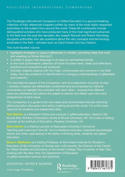 The Routledge International Companion to Gifted Education is a ground-breaking collection of fully-referenced chapters written by many of the most highly-respected authorities on the subject from around the world. These fifty contributors include distinguished scholars who have produced many of the most significant advances to the field over the past few decades, like Joseph Renzulli and Robert Sternberg, alongside authorities who ask questions about the very concepts and terminology embodied in the field - scholars such as Carol Dweck and Guy Claxton. This multi-faceted volume: highlights…mehr