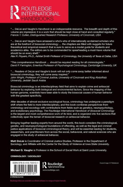 Bringing together leading experts from around the world, this book considers the criminological, genetic and neuropsychological foundations of offending, as well as the legal and criminal justice applications of biosocial criminological theory. The handbook is essential reading for students, researchers, and practitioners from across the social, behavioural, and natural sciences who are engaged in the study of antisocial behaviour.