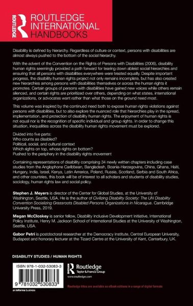 This volume was inspired both by the continued need to expose human rights violations against persons with disabilities, but to also explore the nuanced role that hierarchies play in the spread, implementation, and protection of disability human rights. The enjoyment of human rights is not equal nor is the recognition of specific individuals and groups' rights. In order to change this situation, inequalities across the disability human rights movement must be explored.