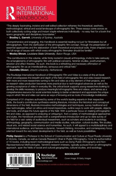 The Routledge International Handbook of Ethnographic Film and Video is a state-of-the-art book which encompasses the breadth and depth of the field of ethnographic film and video-based research. With more and more researchers turning to film and video as a key element of their projects, and as research video production becomes more practical due to technological advances as well as the growing acceptance of video in everyday life, this critical book supports young researchers looking to develop the skills necessary to produce meaningful ethnographic films and videos, and serves as a comprehensive resource for social scientists looking to better understand and appreciate the unique ways in which film and video can serve as ways of knowing and as tools of knowledge mobilization. Comprised of 31 chapters authored by some of the world's leading experts in their respective fields, the book's contributors synthesize existing literature, introduce the historical and conceptual dimensions of the field, illustrate innovative methodologies and techniques, survey traditional and new technologies, reflect on ethics and moral imperatives, outline ways to work with people, objects, and tools, and shape the future agenda of the field. With a particular focus on making ethnographic film and video, as opposed to analyzing or critiquing it, from a variety of methodological approaches and styles, the Handbook provides both a comprehensive introduction and up-to-date survey of the field for a vast variety of audiovisual researchers, such as scholars and students in sociology, anthropology, geography, communication and media studies, education, cultural studies, film studies, visual arts, and related social science and humanities. As such, it will appeal to a multidisciplinary and international audience, and features a dynamic, forward-thinking, innovative, and contemporary focus oriented toward the very latest developments in the field, as well as future possibilities.