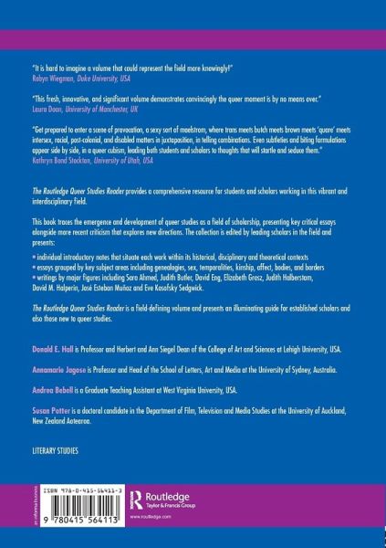 The Routledge Queer Studies Reader is a field-defining volume and presents an illuminating guide for established scholars and also those new to Queer Studies.