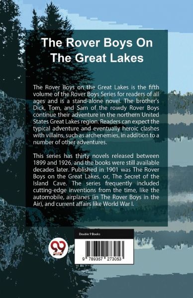 The Rover Boys on the Great Lakes is the fifth volume of the Rover Boys Series for readers of all ages and is a stand-alone novel. The brother's Dick, Tom, and Sam of the rowdy Rover Boys continue their adventure in the northern United States Great Lakes region. Readers can expect the typical adventure and eventually heroic clashes with villains, such as archenemies, in addition to a number of other adventures. This series has thirty novels released between 1899 and 1926, and the books were still available decades later. Published in 1901 was The Rover Boys on the Great Lakes, or, The Secret of the Island Cave. The series frequently included cutting-edge inventions from the time, like the automobile, airplanes (in The Rover Boys in the Air), and current affairs like World War I.