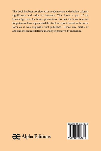 This book has been considered by academicians and scholars of great significance and value to literature. This forms a part of the knowledge base for future generations. So that the book is never forgotten we have represented this book in a print format as the same form as it was originally first published. Hence any marks or annotations seen are left intentionally to preserve its true nature.