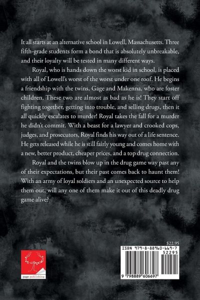 It all starts at an alternative school in Lowell, Massachusetts. Three fifth-grade students form a bond that is absolutely unbreakable, and their loyalty will be tested in many different ways. Royal, who is hands down the worst kid in school, is placed with all of Lowell's worst of the worst under one roof. He begins a friendship with the twins, Gage and Makenna, who are foster children. These two are almost as bad as he is! They start off fighting together, getting into trouble, and selling drugs, then it all quickly escalates to murder! Royal takes the fall for a murder he didn't commit. With a beast for a lawyer and crooked cops, judges, and prosecutors, Royal finds his way out of a life sentence. He gets released while he is still fairly young and comes home with a new, better product, cheaper prices, and a top drug connection. Royal and the twins blow up in the drug game way past any of their expectations, but their past comes back to haunt them! With an army of loyal soldiers and an unexpected source to help them out, will any one of them make it out of this deadly drug game alive?