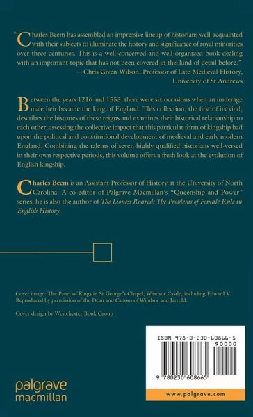 "Charles Beem has assembled an impressive lineup of historians well-acquainted with their subjects to illuminate the history and significance of royal minorities over three centuries. This is a well-conceived and well-organized book dealing with an important topic that has not been covered in this kind of detail before." - Chris Given-Wilson, Professor of Late Medieval History, University of St Andrews"Royal minorities have always intrigues historians. The ultimate anomaly in the dynastic principle arose where the enormous panoply of royal power had to be borne by monarchs who at their accession were sometimes only adolescents, sometimes barely within the age of reason, or sometimes mere mewling babies. The monarchs in question - Henry III, Edward III, Richard II, Henry VI, Edward V, and Edward VI - form the subjects of the studies drawn together in this new collection, authored respectively, by Christian Hillen and Frank Wswall, James bothwell, Gwilym Dodd, Ralph Griffiths, Michael Hicks, and Charles beem. - W. Mark Ormrod, Journal of British Studies Book Review