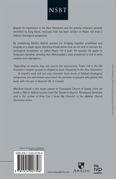 Despite its importance in the New Testament and the priestly messianic promise identified by King David, relatively little has been written on Psalm 110 from a biblical-theological perspective. By considering David's biblical warrant for bringing together priesthood and kingship in a single figure, Matthew Emadi shows how we are able to uncover the theological foundation on which Psalm 110 is built. He situates the psalm in Scripture's storyline, showing that Melchizedek's royal priesthood is tied to both creation and redemption.