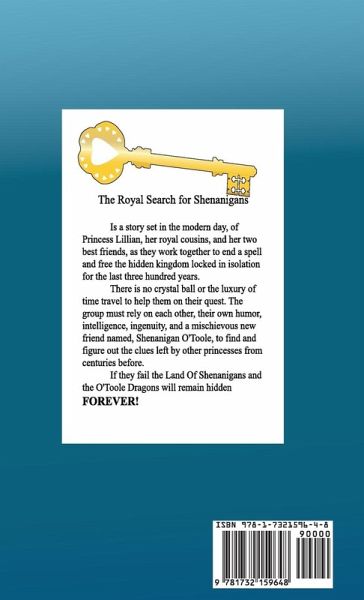 A land that has been locked in isolation more than three hundred years ago by a young princess as a time out of sorts for a misbehaving older brother. This action weaved a long thread of magic that requires a special princess from each century to become part of the adventure. Each princess was to share her story and leave clues for the next princess to follow while preserving it's secret. Our heroine Princess Lillian finds that although she is the youngest of the predestined princesses she also has inherited the complicated task of completing the final phase of this century old plan. Using intelligence, ingenuity, bravery, and a centuries old set of Princess Rules to guide her, Lillian achieves a successful outcome to free The Land Of Shenanigans.
