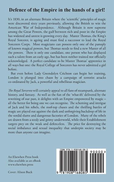 It's 1830, in an alternate Britain where the 'scientific' principles of magic were discovered sixty years previously, allowing the British to win the American War of Independence. Although Britain is now supreme among the Great Powers, the gulf between rich and poor in the Empire has widened and unrest is growing every day. Master Thomas, the King's Royal Sorcerer, is ageing and must find a successor to lead the Royal Sorcerers Corps. Most magicians can possess only one of the panoply of known magical powers, but Thomas needs to find a new Master of all the powers. There is only one candidate, one person who has displayed such a talent from an early age, but has been neither trained nor officially acknowledged. A perfect candidate to be Master Thomas' apprentice in all ways but one: the Royal College of Sorcerers has never admitted a girl before. But even before Lady Gwendolyn Crichton can begin her training, London is plunged into chaos by a campaign of terrorist attacks co-ordinated by Jack, a powerful and rebellious magician. The Royal Sorceress will certainly appeal to all fans of steampunk, alternate history, and fantasy. As well as the fun of the 'what-ifs' delivered by the rewriting of our past, it delights with an Empire empowered by magic - all the better for being one we can recognise. The scheming and intrigue of Jack and his rebels, the roof-top chases and the thrilling battles of magic are played out against the dark and unforgiving backdrop of life in the sordid slums and dangerous factories of London. Many of the rebels are drawn from a seedy and grimy underworld, while their Establishment targets prey on the weak and defenceless. The price for destroying the social imbalance and sexual inequality that underpin society may be more than anyone can imagine.