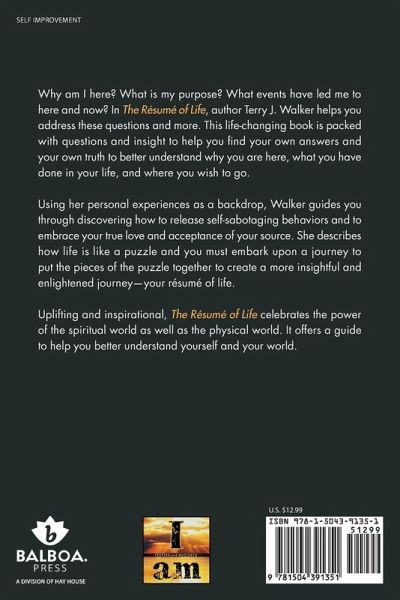 Why am I here? What is my purpose? What events have led me to here and now? In The Résumé of Life, author Terry J. Walker helps you address these questions and more. This life-changing book is packed with questions and insight to help you find your own answers and your own truth to better understand why you are here, what you have done in your life, and where you wish to go. Using her personal experiences as a backdrop, Walker guides you through discovering how to release self-sabotaging behaviors and to embrace your true love and acceptance of your source. She describes how life is like a puzzle and you must embark upon a journey to put the pieces of the puzzle together to create a more insightful and enlightened journey-your résumé of life. Uplifting and inspirational, The Résumé of Life celebrates the power of the spiritual world as well as the physical world. It offers a guide to help you better understand yourself and your world.