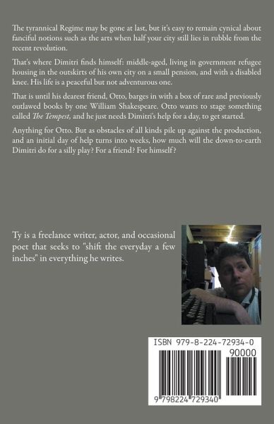 The tyrannical Regime may be gone at last, but it's easy to remain cynical about fanciful notions such as the arts when half your city still lies in rubble from the recent revolution. That's where Dimitri finds himself: middle-aged, living in government refugee housing in the outskirts of his own city on a small pension, and with a disabled knee. His life is a peaceful but not adventurous one. That is until his dearest friend, Otto, barges in with a box of rare and previously outlawed books by one William Shakespeare. Otto wants to stage something called The Tempest, and he just needs Dimitri's help for a day, to get started. Anything for Otto. But as obstacles of all kinds pile up against the production, and an initial day of help turns into weeks, how much will the down-to-earth Dimitri do for a silly play? For a friend? For himself?